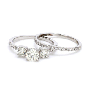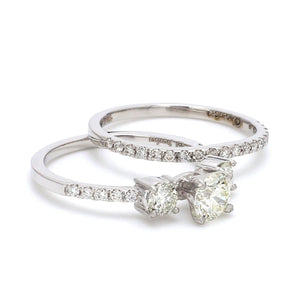 Platinum Solitaire Engagement Bridal Ring Set with Diamond Accents JL PT 584, 585