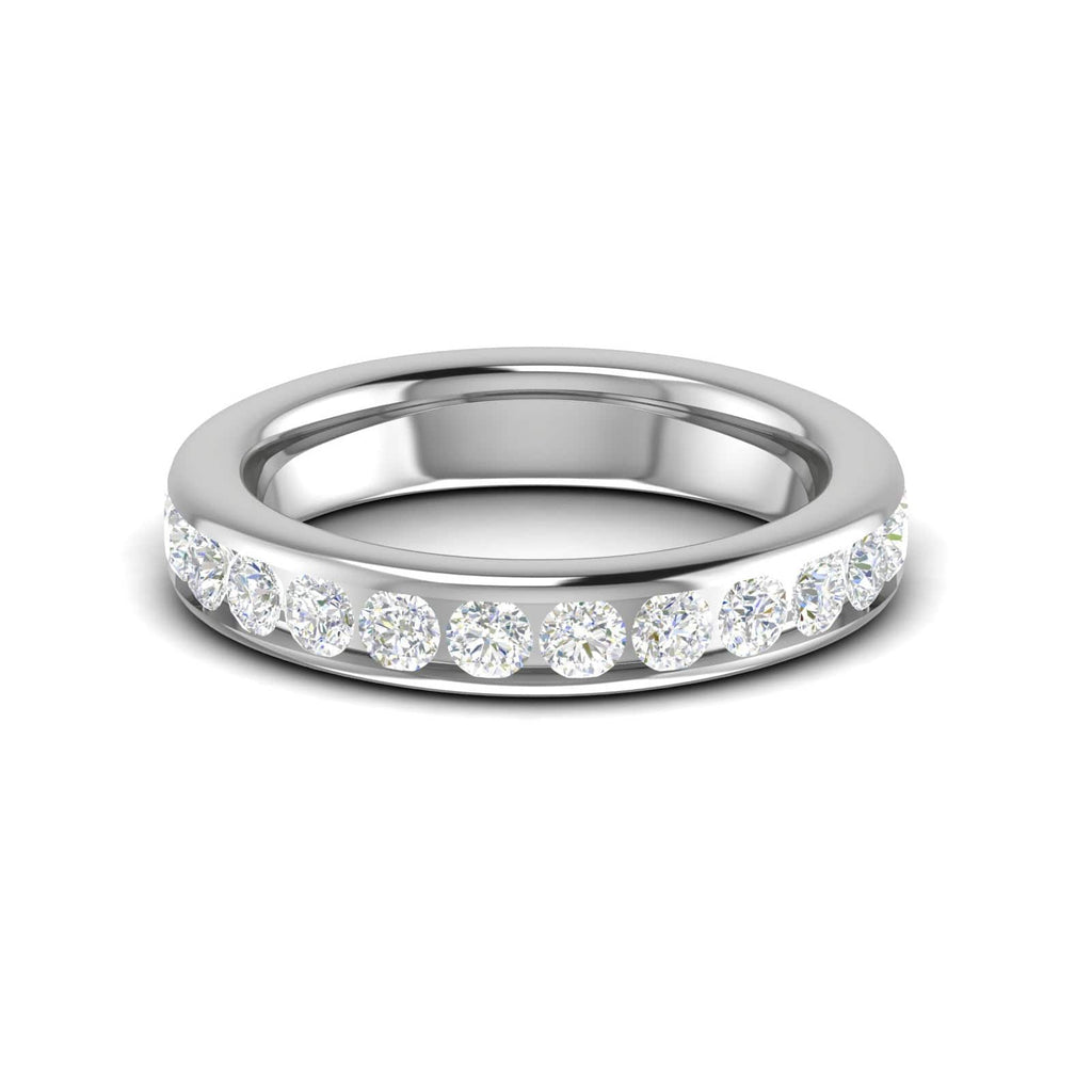 Beautiful half & full eternity rings with diamonds set in straight lines across platinum bands. Epitome of Elegance. Perfect Eternity Bands for Women. Crafted in 95% pure platinum. Hallmarked for Pt 950. Certified by PGI. Free Delivery in India. 30-Days 100% Money Back Guarantee.