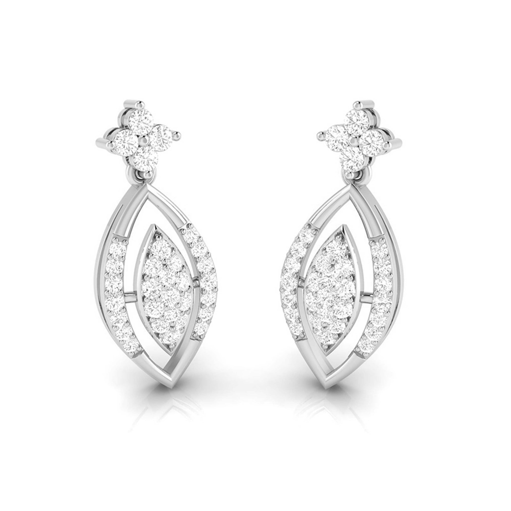 Cute platinum earrings designed with diamonds.