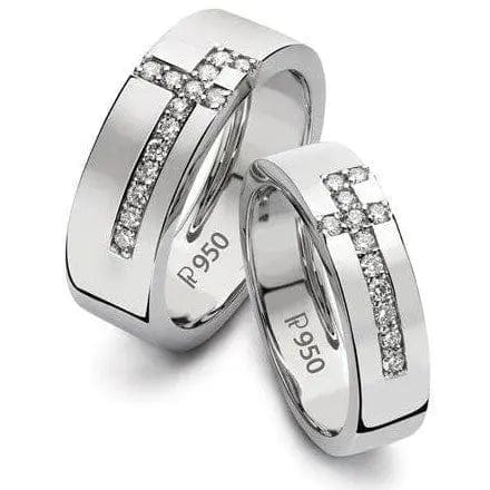 Conjoining Platinum Rings for Couples with Single Diamonds JL PT 599