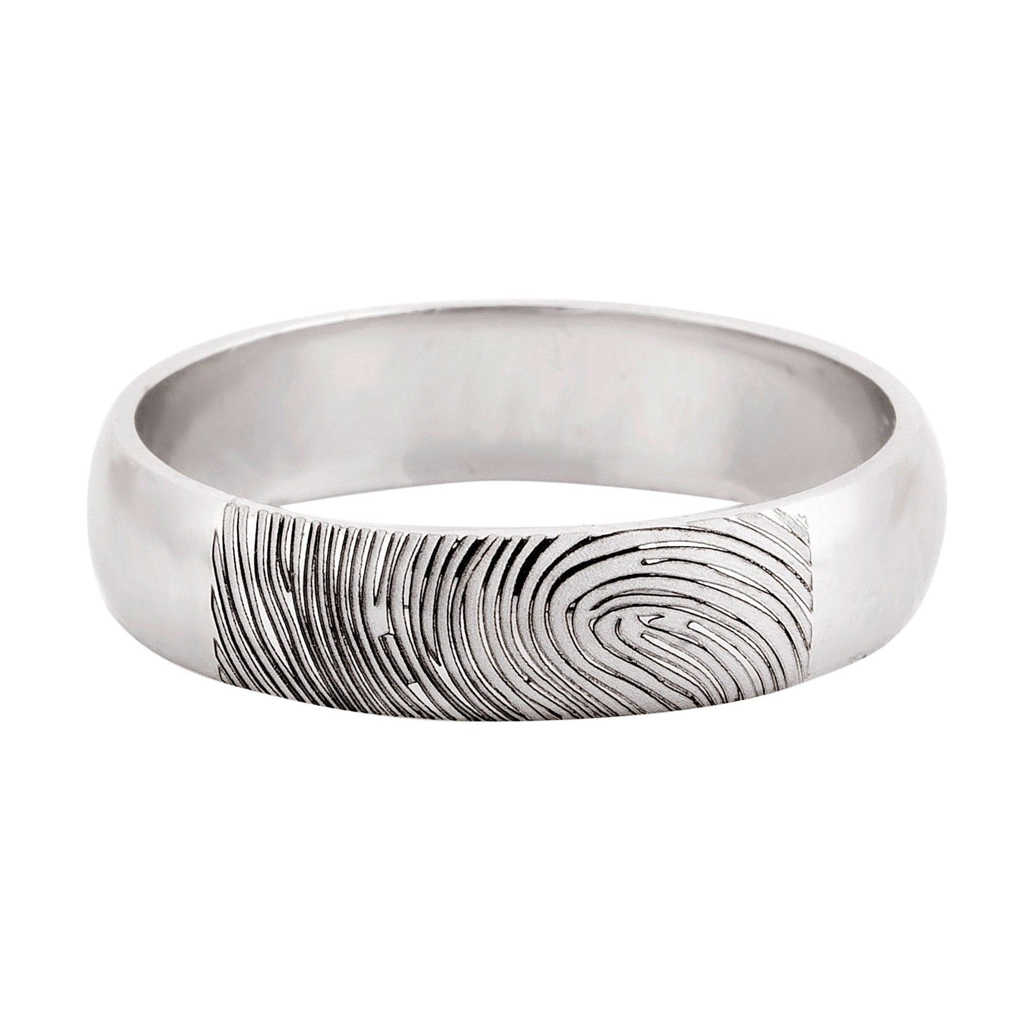 Customized 6mm, 4mm Fingerprint Engraved Platinum Rings for Couples