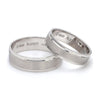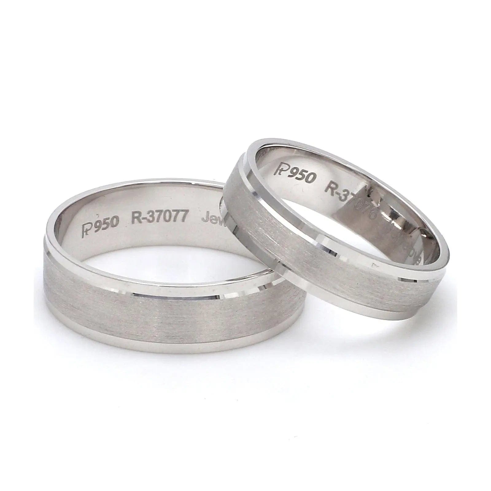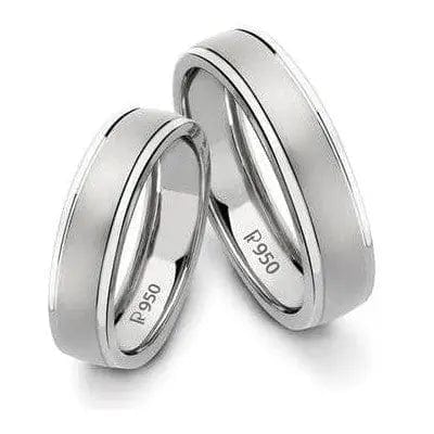 Pure & simple, platinum love bands. This pair of couple rings is an evergreen design that is always in style. With a broad center matte finish layer bordered by thin hi-polish layers on either side, this beautiful pair resonates with love, simple eternal.