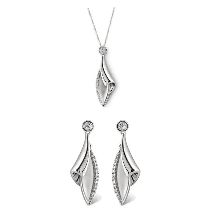 Contemporary Platinum Earrings Pendant Set SJ PTO E 110
