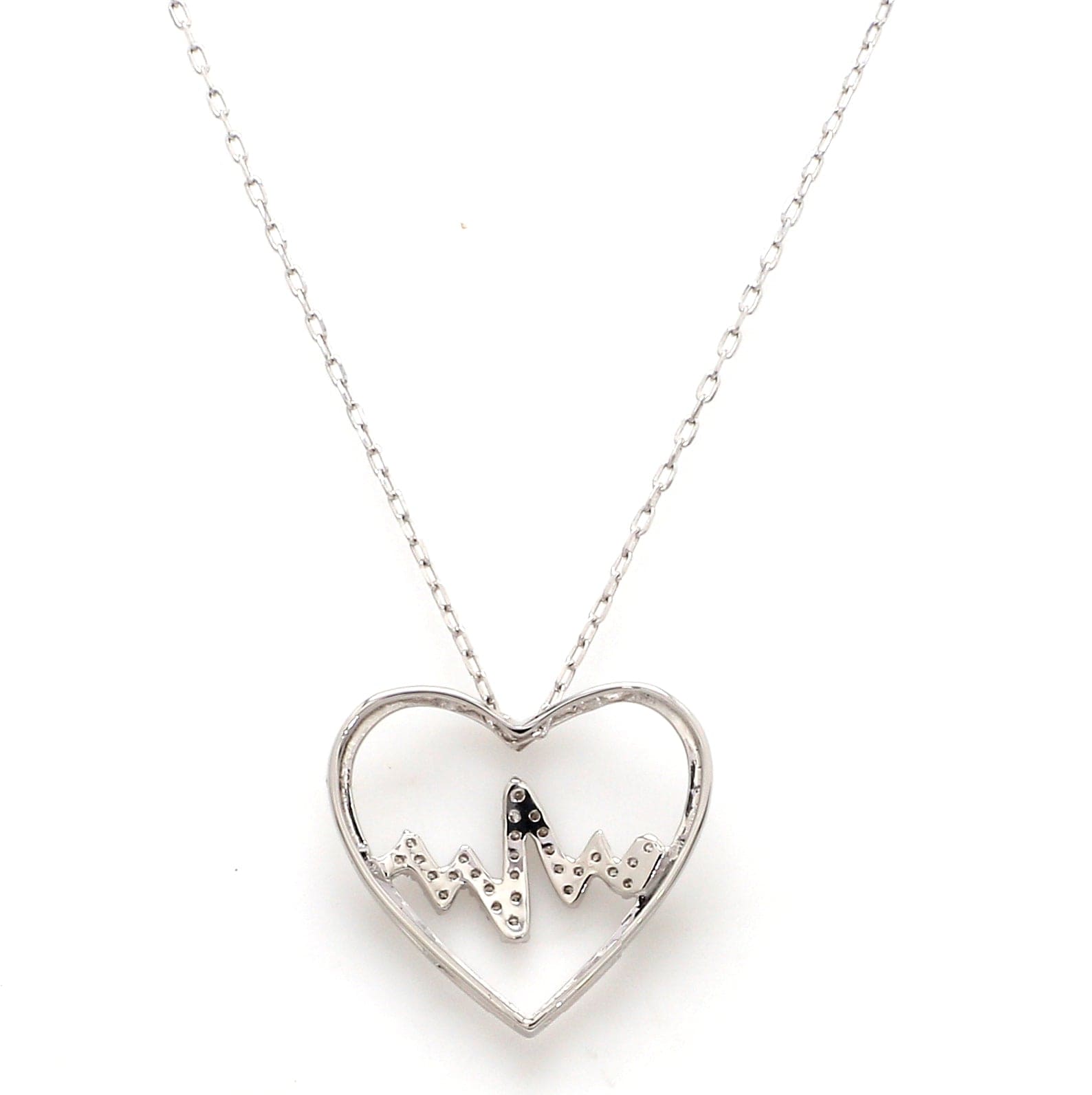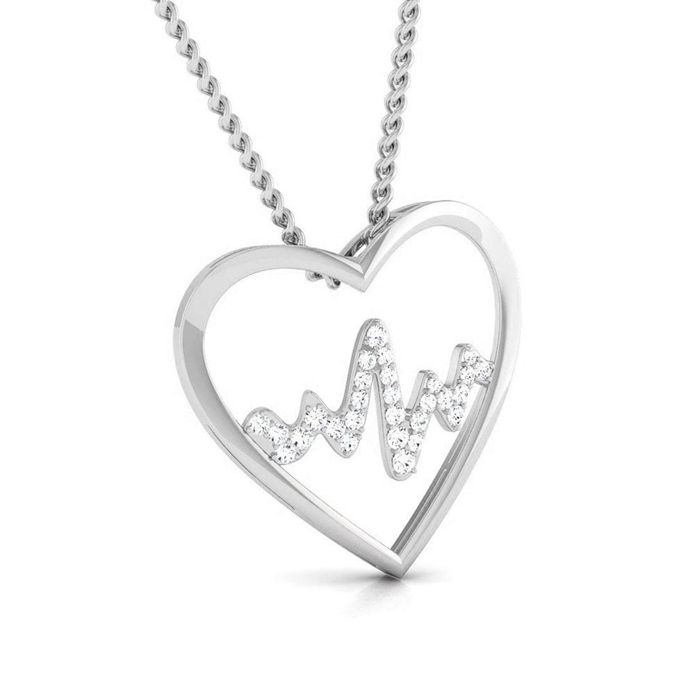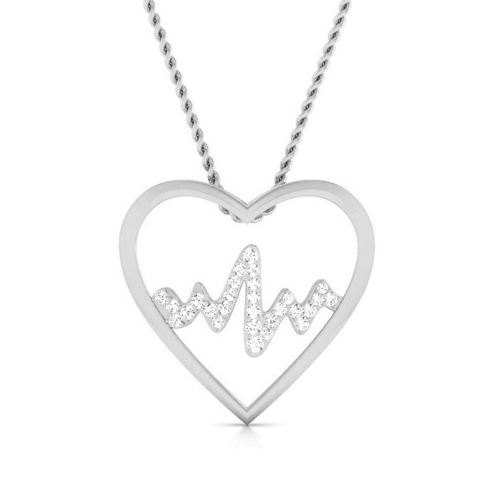 Platinum Pendant designed as a plain platinum heart with a diamond studded heartbeat inside the heart. This pendant is one of the best ways to express your love to her.