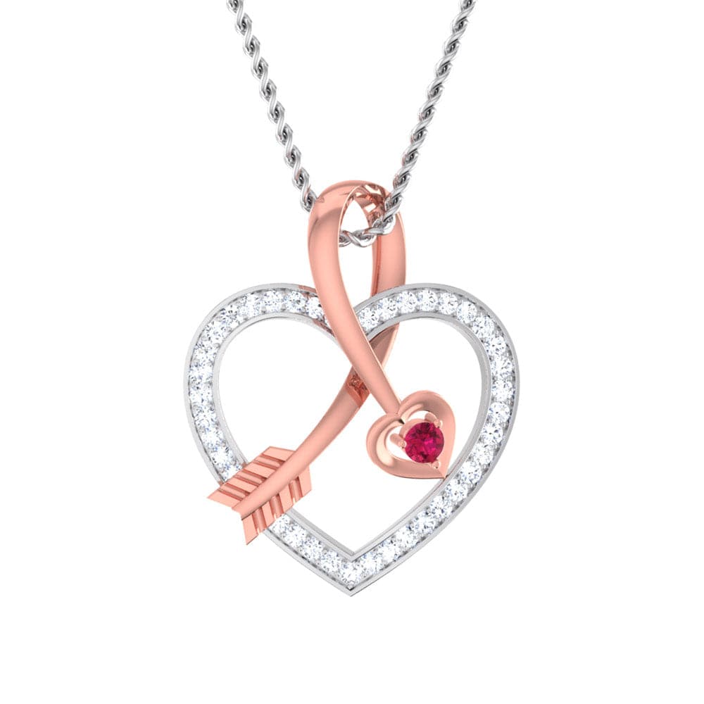 Cupid's Arrow Platinum & Rose Gold Heart Pendant with Ruby & Diamonds JL PT P 8064