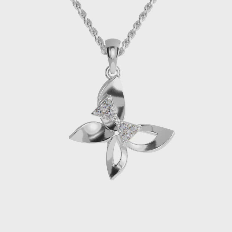Platinum butterfly pendant with 6 diamonds for women.