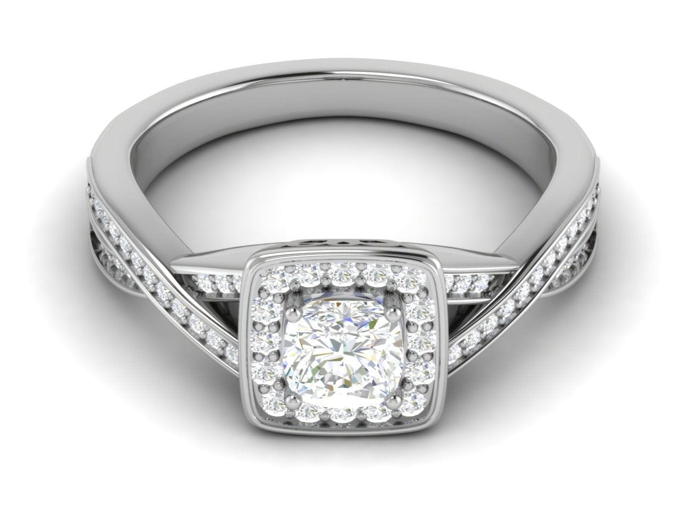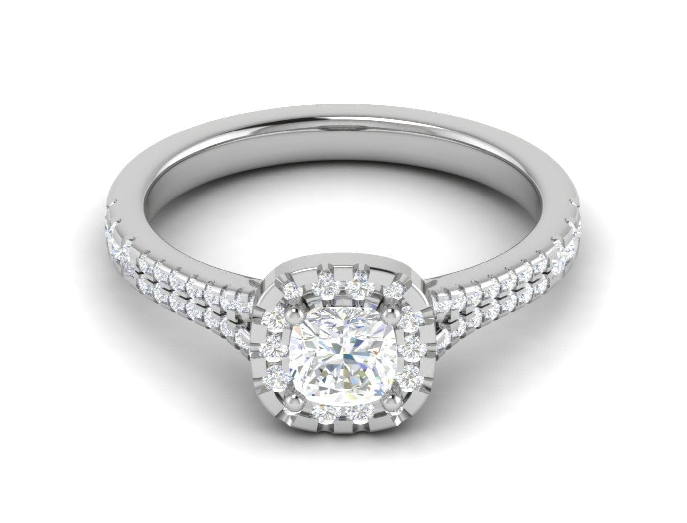 50-Pointer Cushion Cut Solitaire Diamond Halo Shank Platinum Engagement Ring JL PT 1195