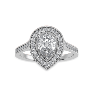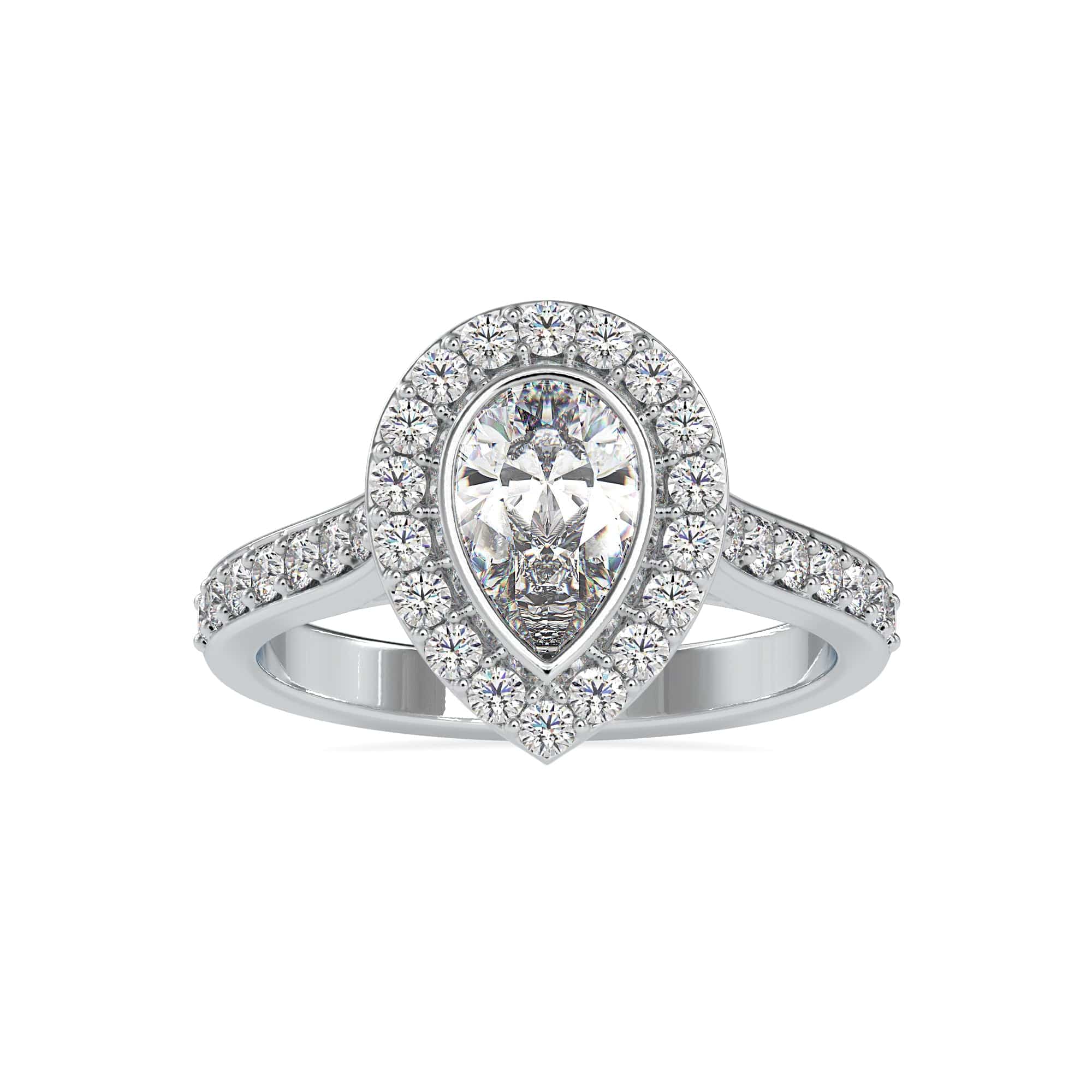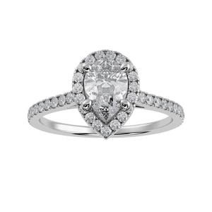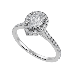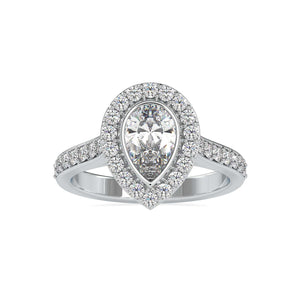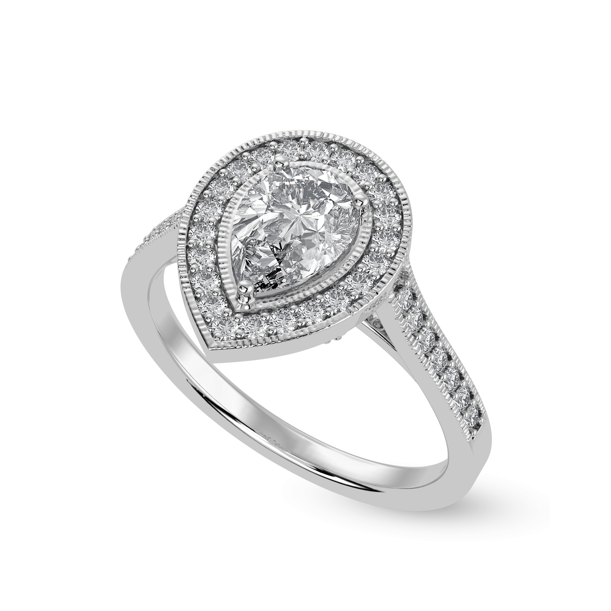 50-Pointer Pear Cut Solitaire Halo Diamond Shank Platinum Ring JL PT 1200-A