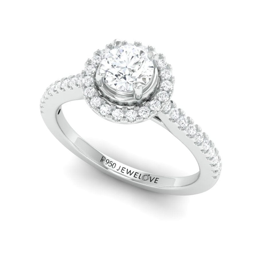 50-Pointer Solitaire Halo Diamond Platinum Engagement Ring JL PT WB5996E-A
