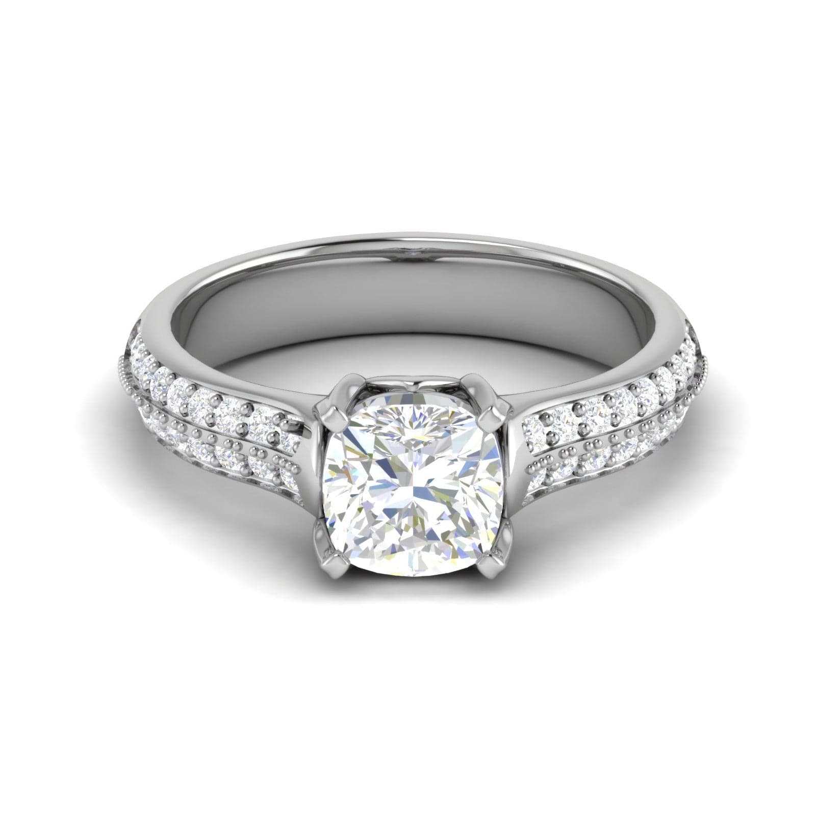50-Pointer Solitaire Engagement Ring for Women with 2-Row Diamonds Shank JL PT G 116-A