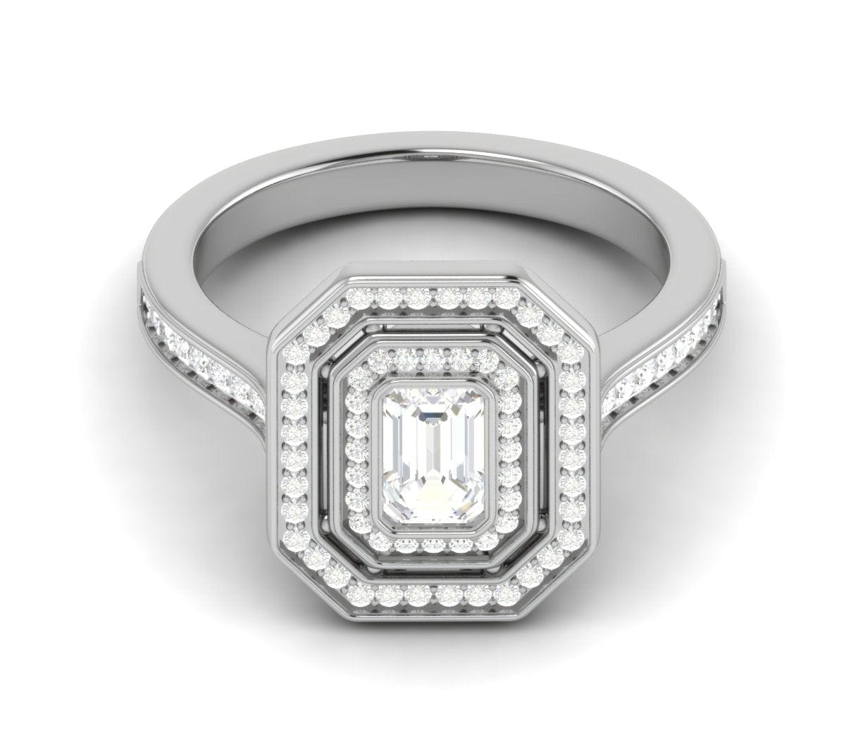 50-Pointer Emerald Cut Solitaire Halo Diamond Shank Platinum Ring JL PT 1197-A