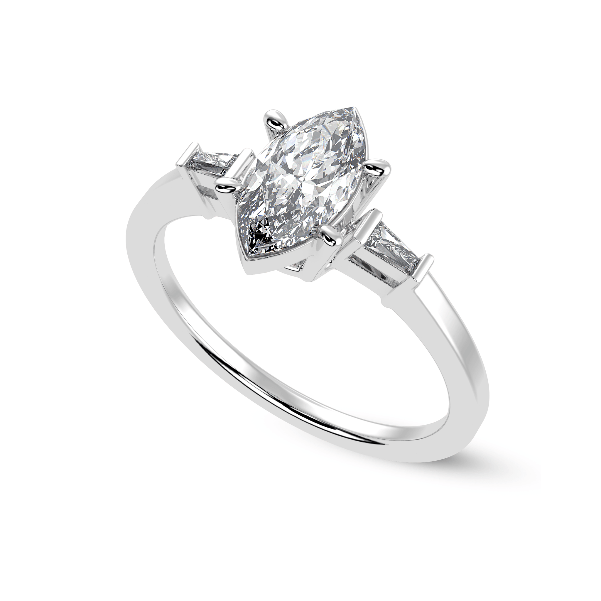 50-Pointer Marquise Cut Solitaire Diamond Accents Shank Platinum Ring JL PT 1246-A