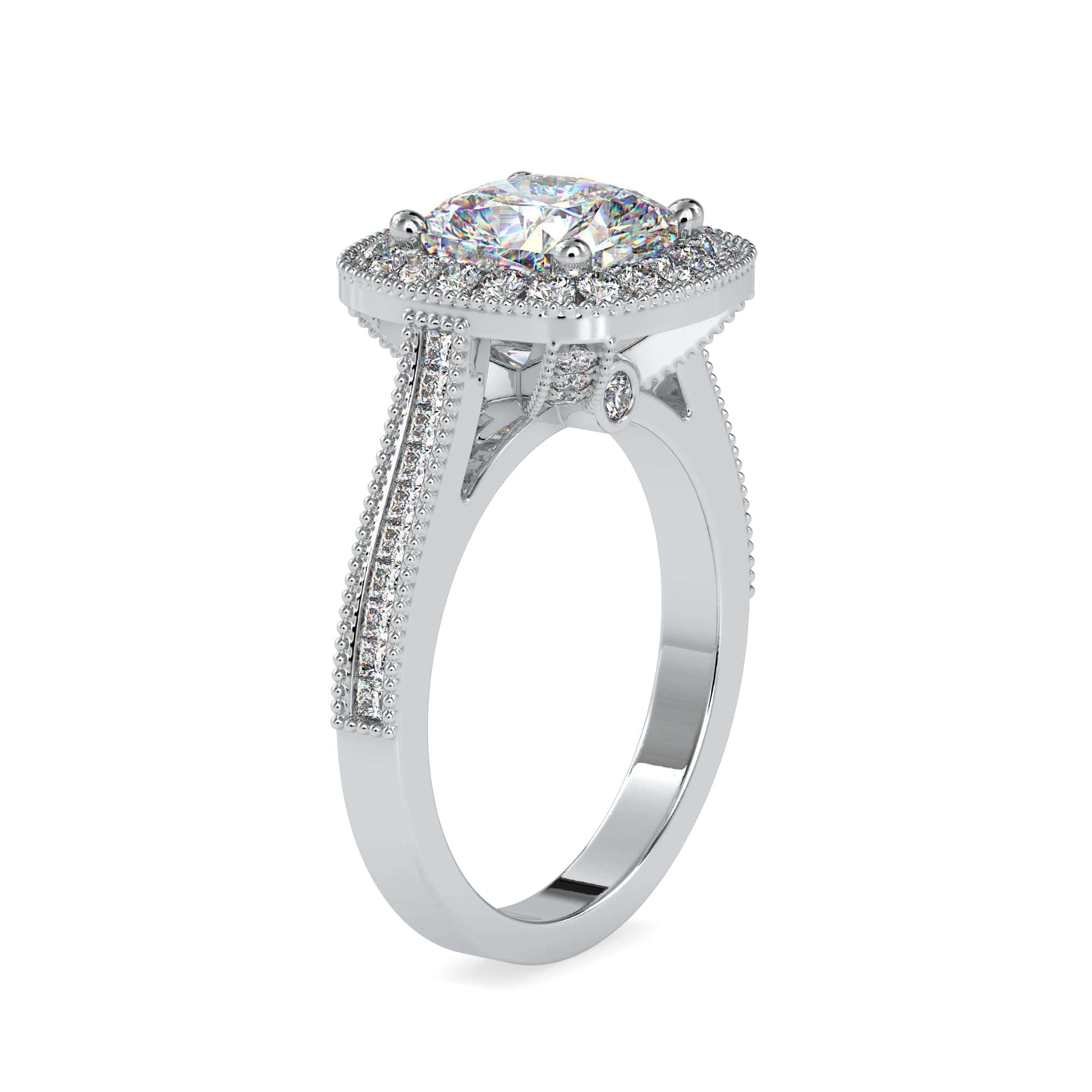 50-Pointer Cushion Cut Solitaire Platinum Diamond Halo Shank Engagement Ring JL PT 0094-A