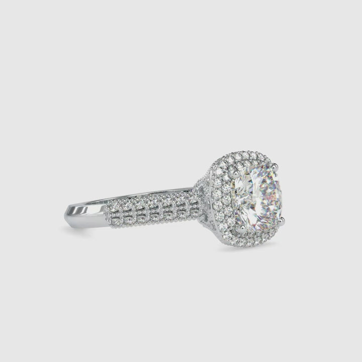 70-Pointer Cushion Cut Solitaire Platinum Double Halo Split Shank Engagement Ring JL PT 0102-A
