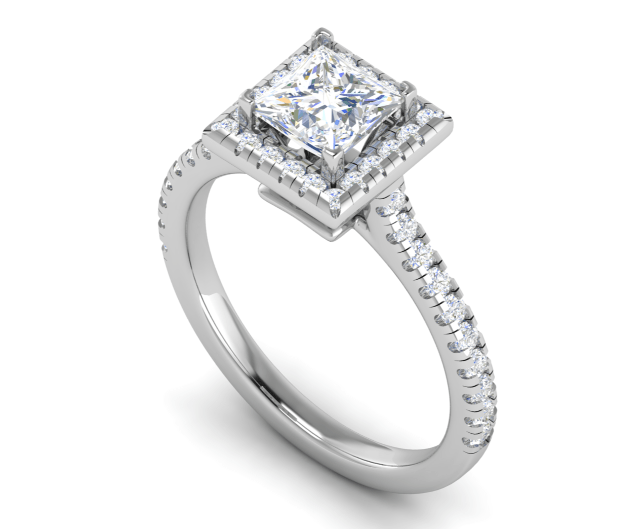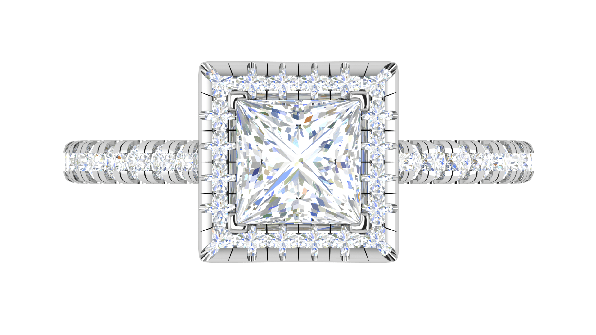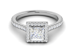 30-Pointer Princess Cut Solitaire Square Halo Diamond Shank Platinum Ring JL PT RH PR 130