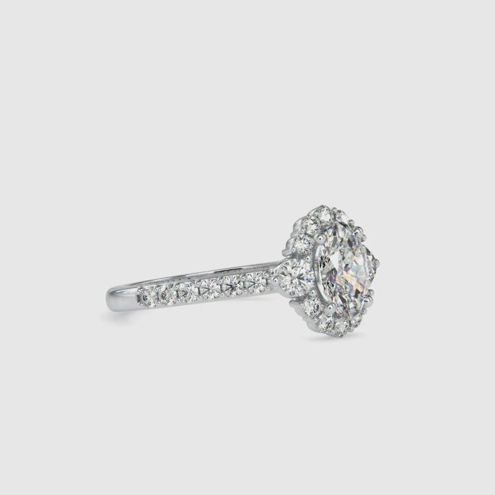 50-Pointer Oval Cut Solitaire Halo Diamond Accents Shank Ring JL PT 0059-A