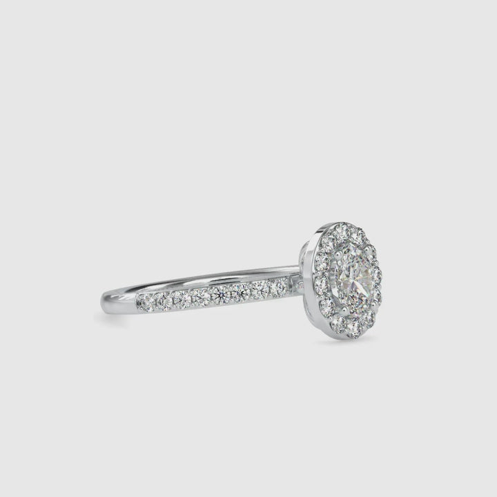 50-Pointer Oval Cut Solitaire Halo Diamond Shank Platinum Ring JL PT 0014-A