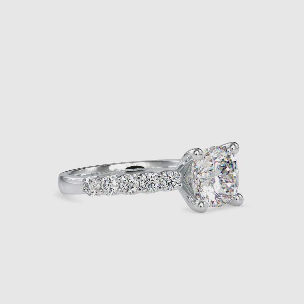 70-Pointer Cushion Cut Solitaire Diamond Shank Platinum Ring JL PT 0111-B