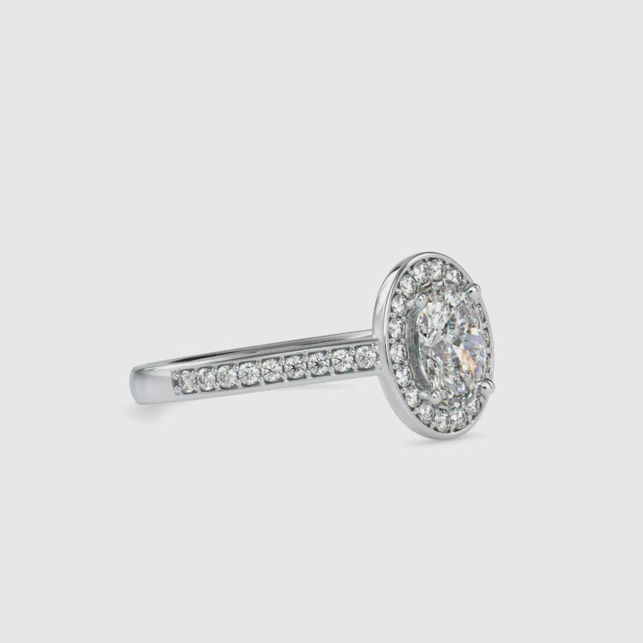 70-Pointer Oval Cut Solitaire Platinum Halo Diamond Shank Engagement Ring JL PT 0060-B