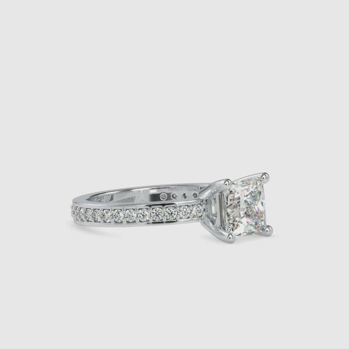 70-Pointer Princess Cut Solitaire Platinum Diamond Shank Ring JL PT 0155-B