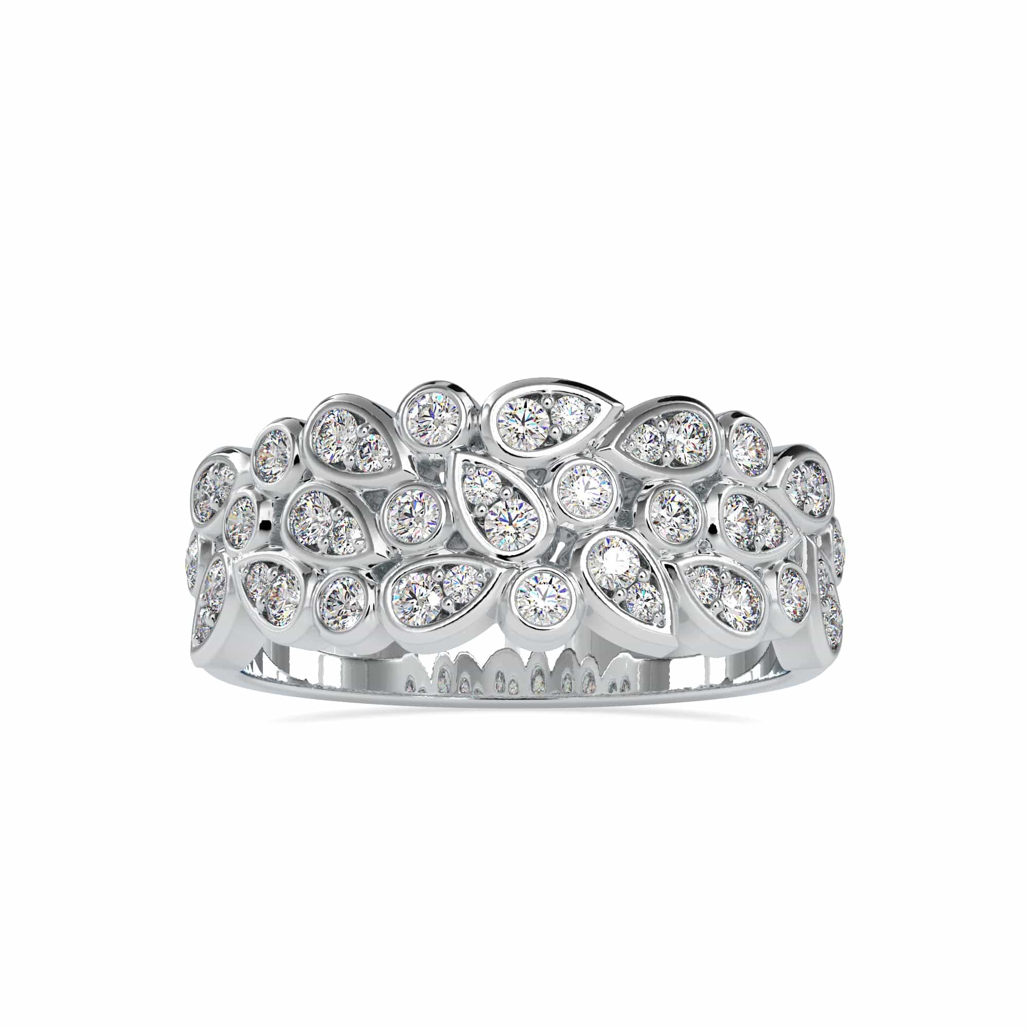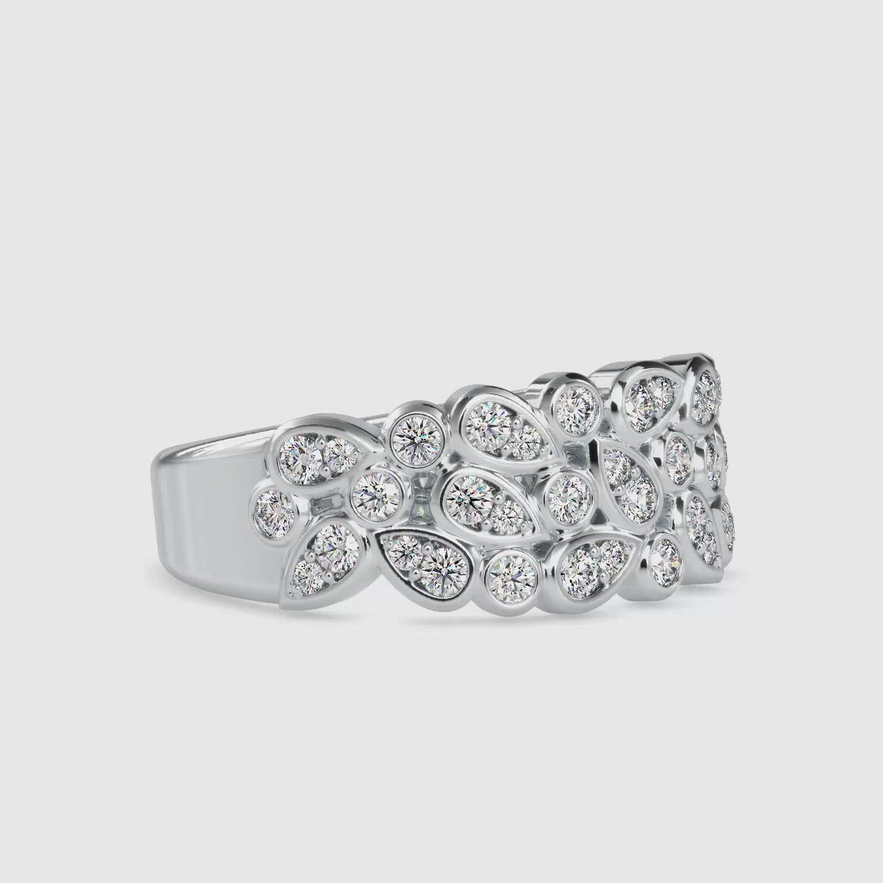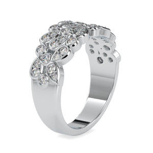 Designer Broad ring for women. Crafted in Platinum. Set with diamonds. Hallmarked for Pt 950. Certified by PGI.