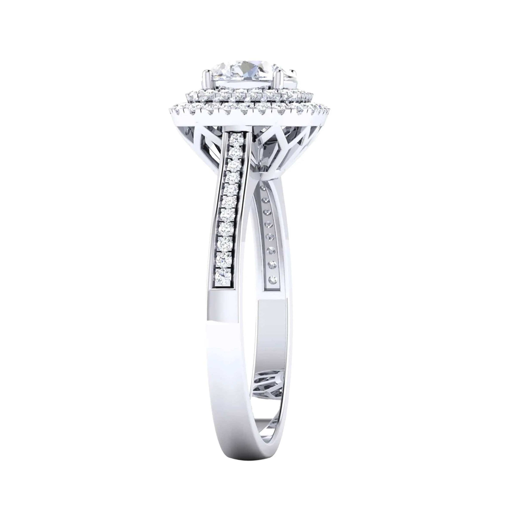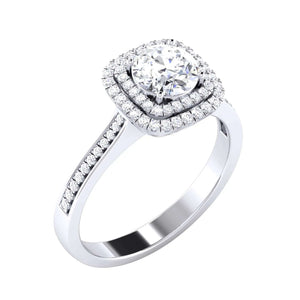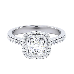 Designer Square Double Halo Solitaire Platinum Engagement Ring for Women JL PT 490