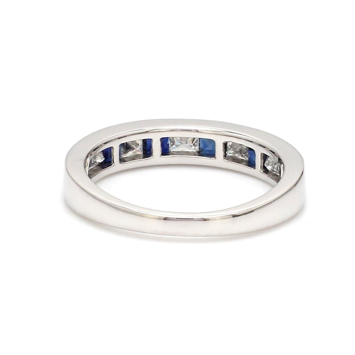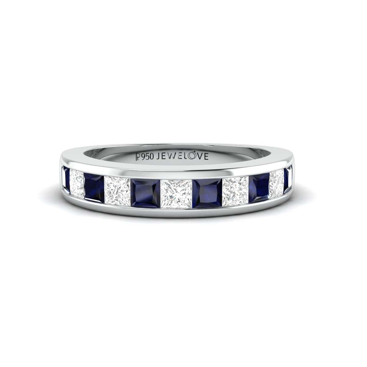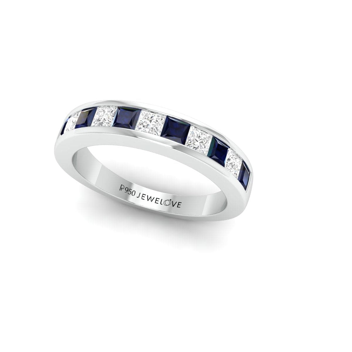 Platinum Blue Sapphire Diamond Princess Cut Wedding Ring JL PT 1012