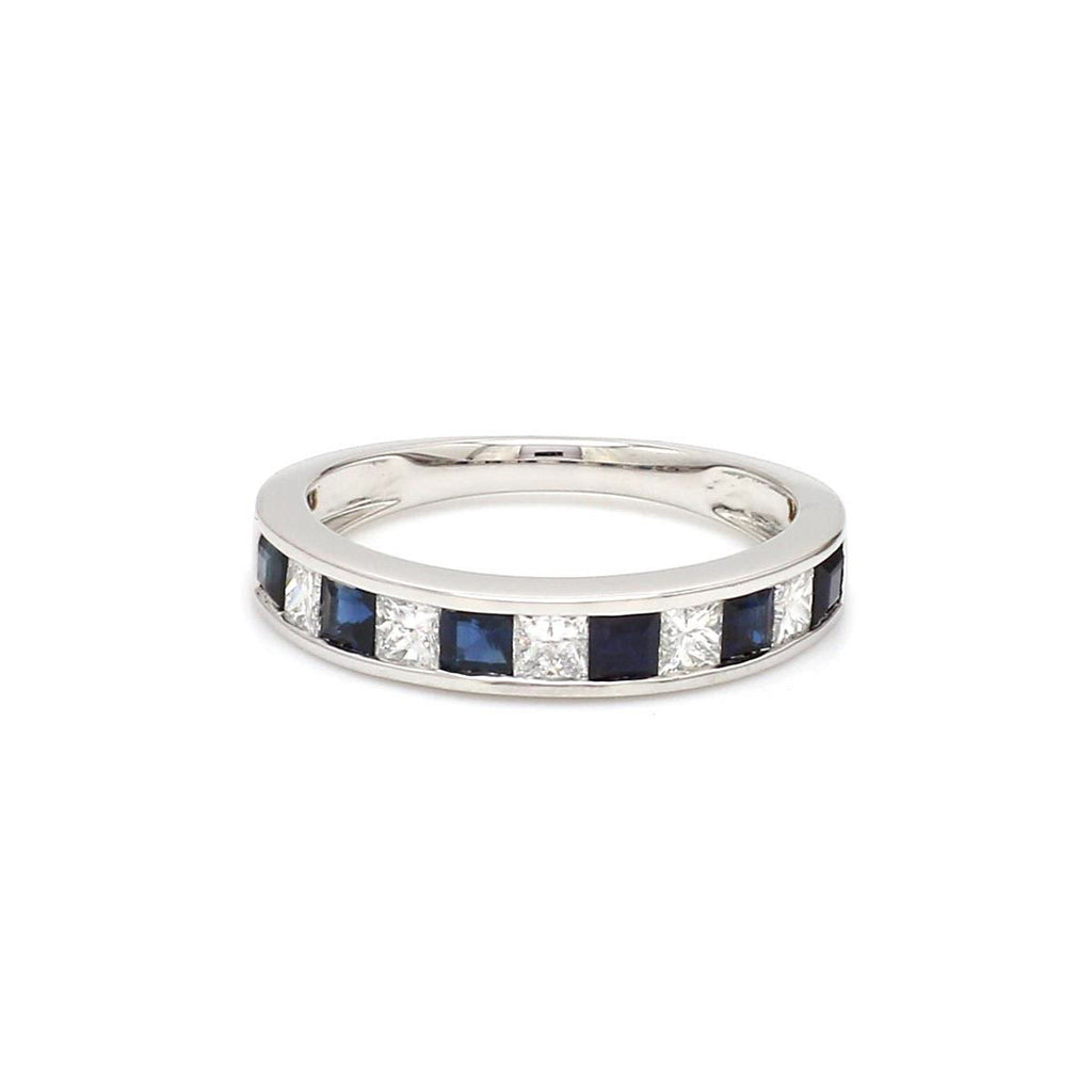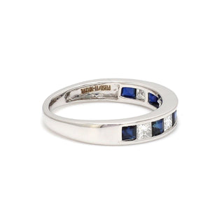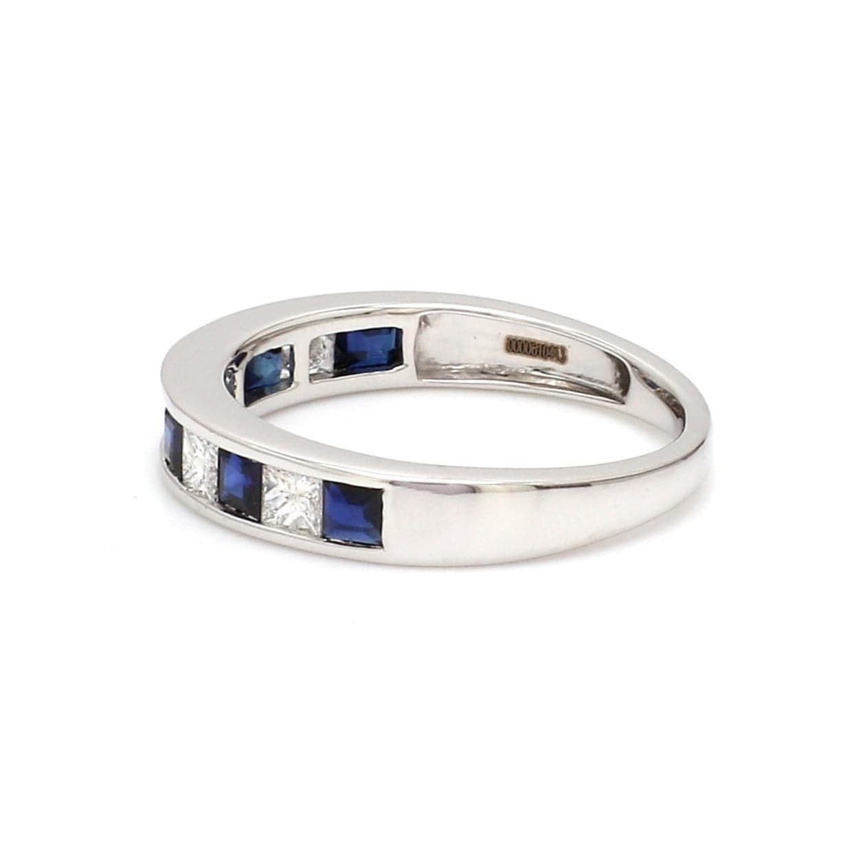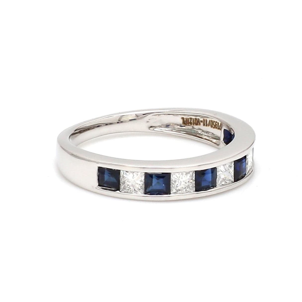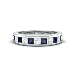 Platinum Blue Sapphire Diamond Princess Cut Wedding Ring JL PT 1012