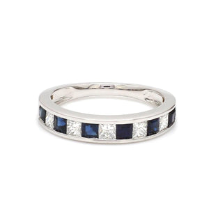 Beautiful Platinum Wedding Ring with Blue Sapphires & Diamonds of Princess Cut. Dazzling beautiful ring inspired by Kate Middleton's sapphire ring.
