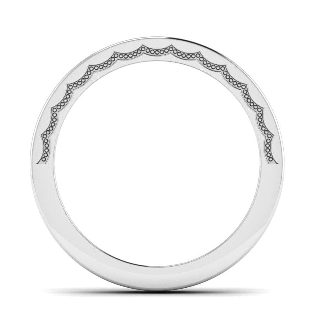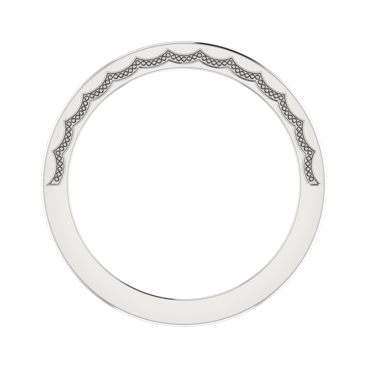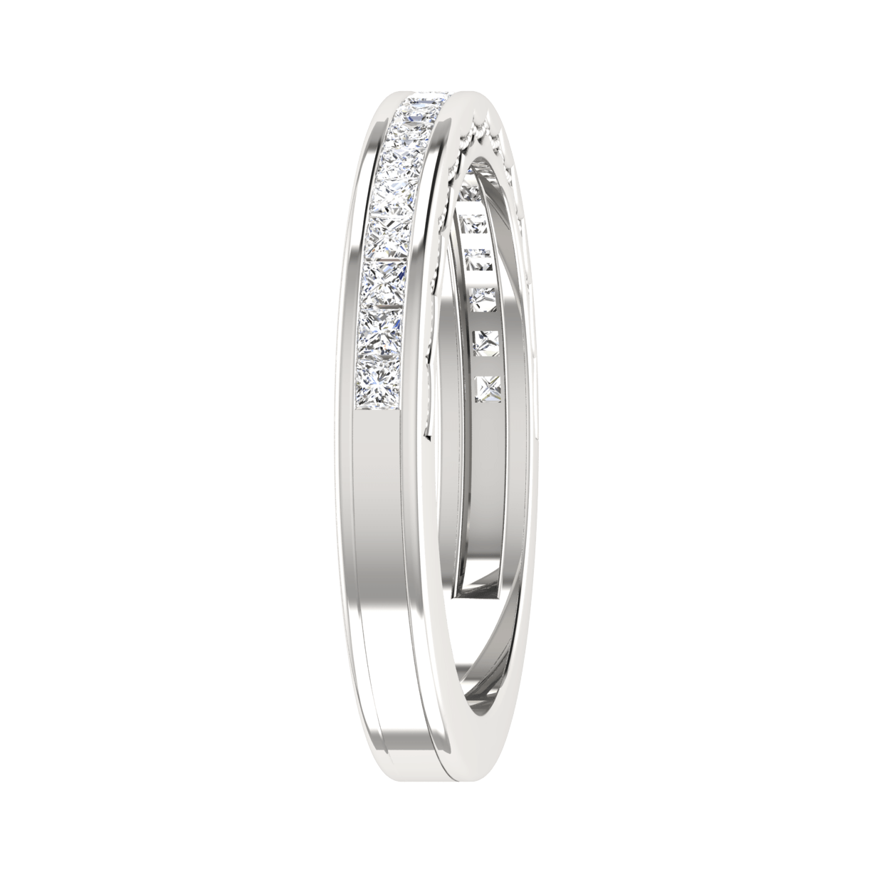 Dazzling princess cut diamonds studded in a row running across half the band, with platinum showing on both sides in a beautifully crafted channel setting band. The ring has a beautiful hidden milgrain finish that represents the inner strength of women.