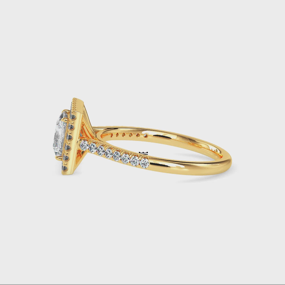 70-Pointer Princess Cut Solitaire Halo Diamond Shank 18K Yellow Gold Ring JL AU 19032Y-B