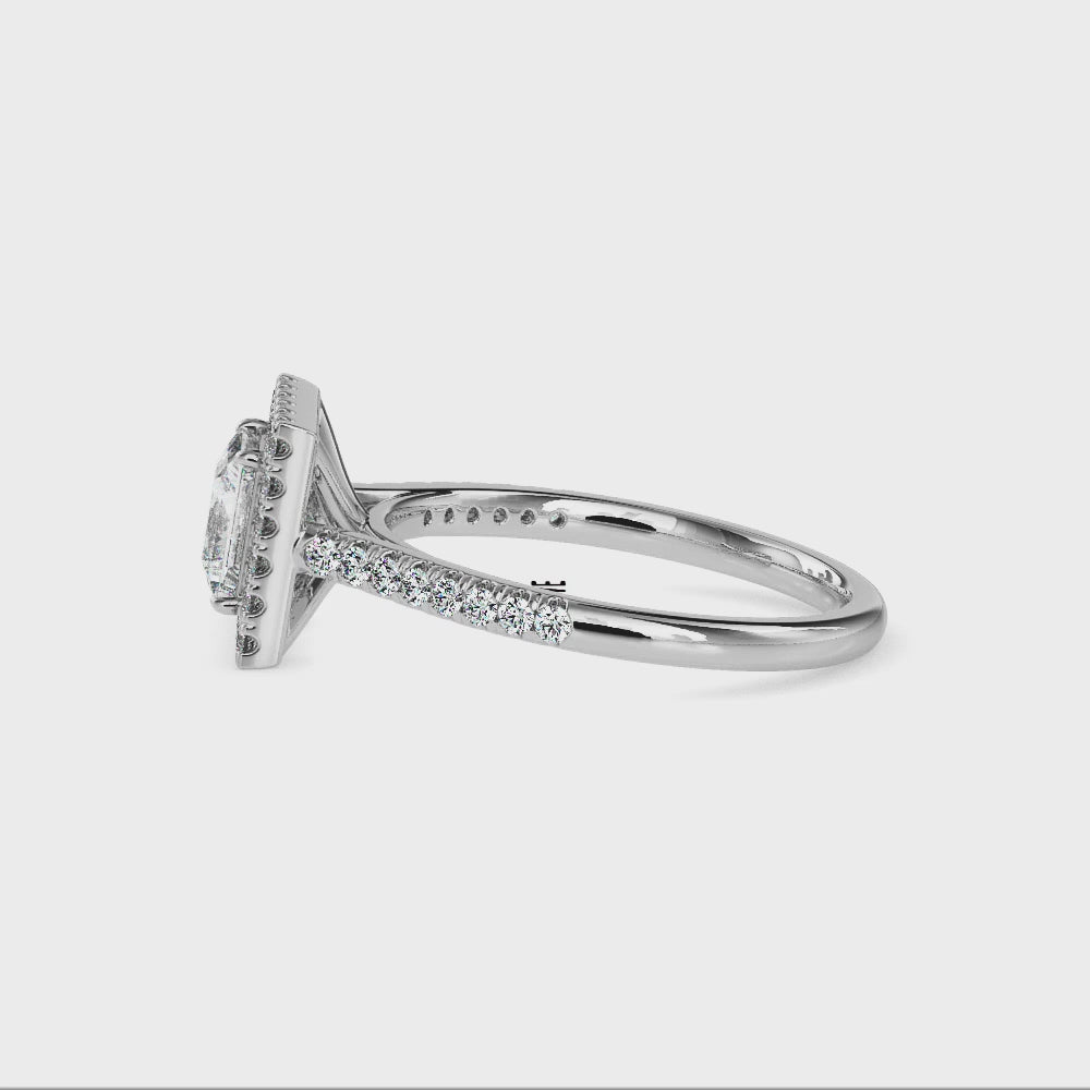 70-Pointer Princess Cut Solitaire Halo Diamond Shank Platinum Ring JL PT 19032-B
