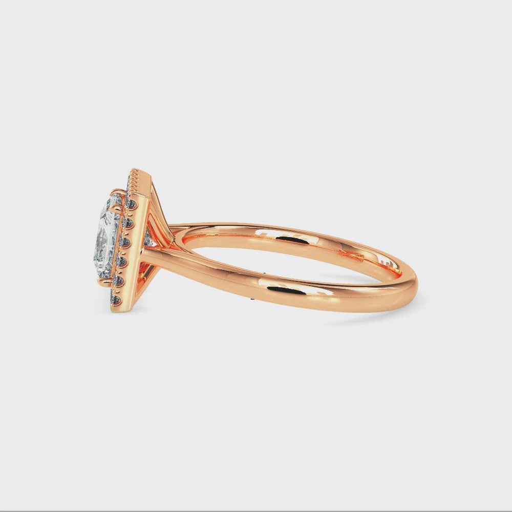 70-Pointer Princess Cut Solitaire Square Halo Diamond 18K Rose Gold Ring JL AU 19022R-B