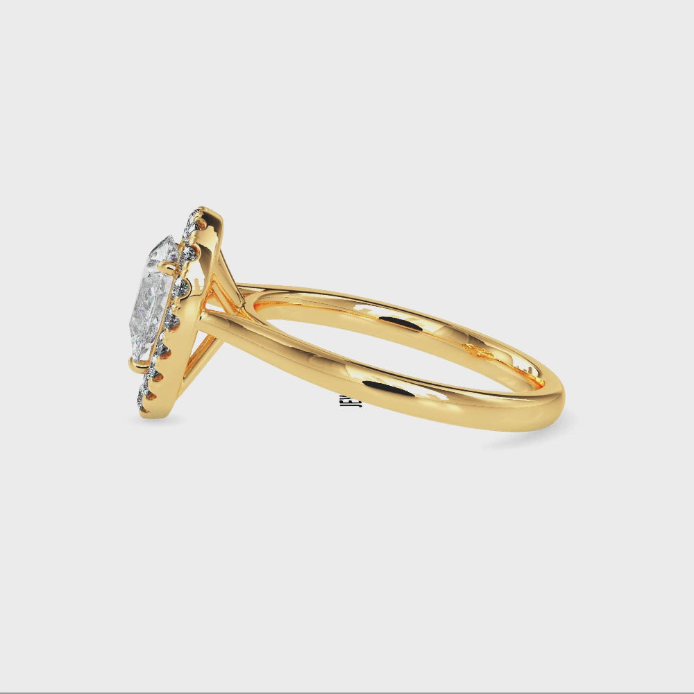 70-Pointer Pear Cut Solitaire Halo Diamond 18K Yellow Gold Ring JL AU 19030Y-B