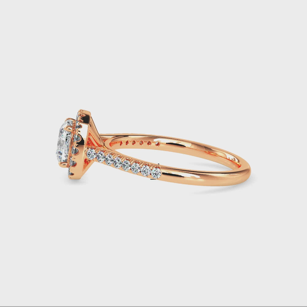 70-Pointer Cushion Cut Solitaire Halo Diamond Shank 18K Rose Gold Ring JL AU 19033R-B