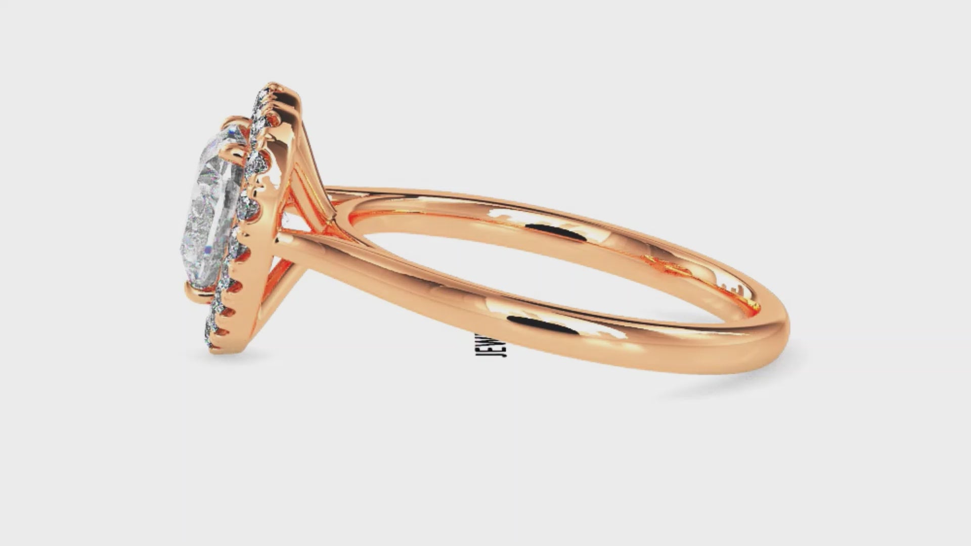 70-Pointer Heart Cut Solitaire Halo Diamond 18K Rose Gold Ring JL AU 19028R-B