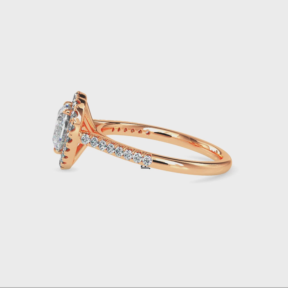 70-Pointer Heart Cut Solitaire Halo Diamond Shank 18K Rose Gold Ring JL AU 19038R-B