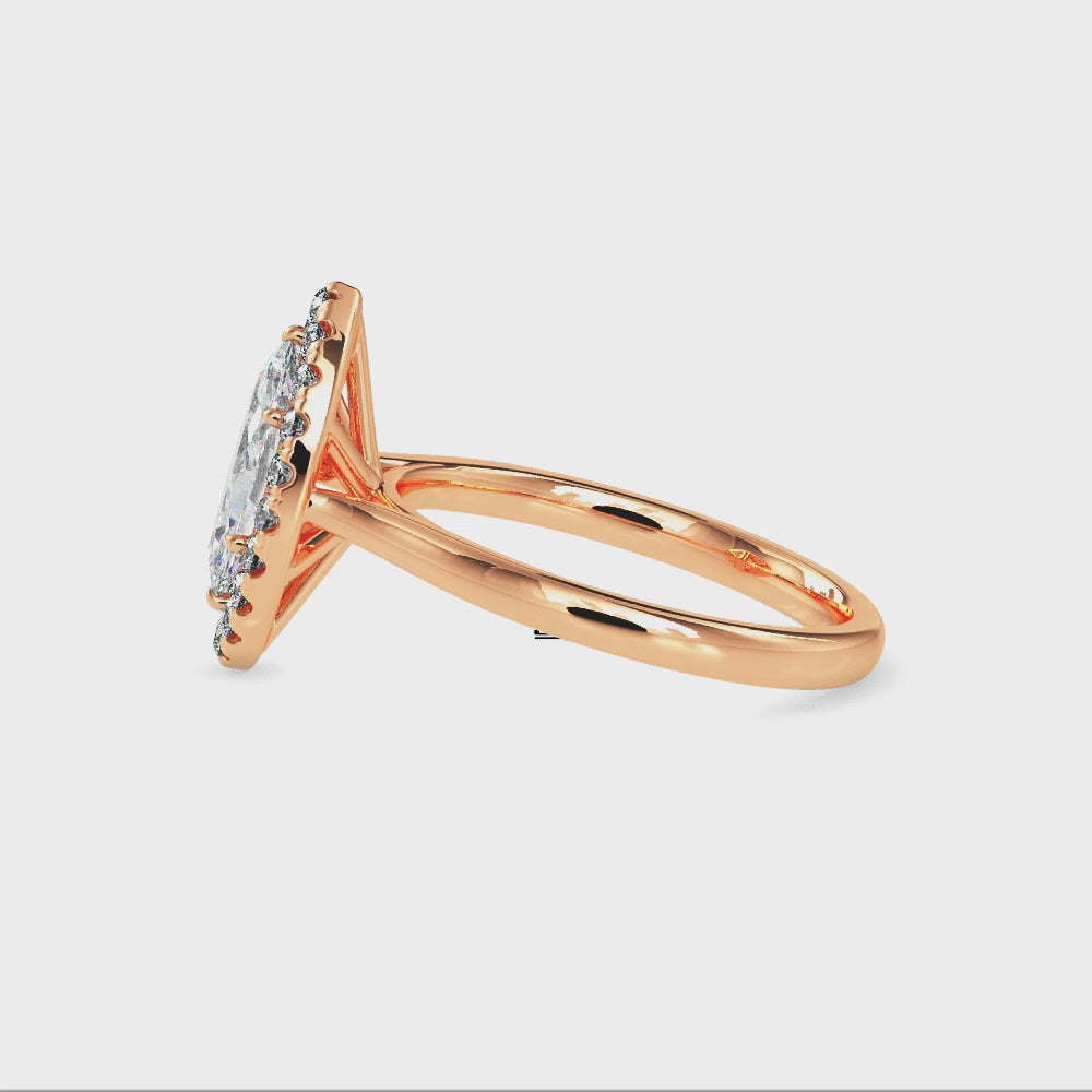 70-Pointer Marquise Cut Solitaire Halo Diamond 18K Rose Gold Ring JL AU 19029R-B