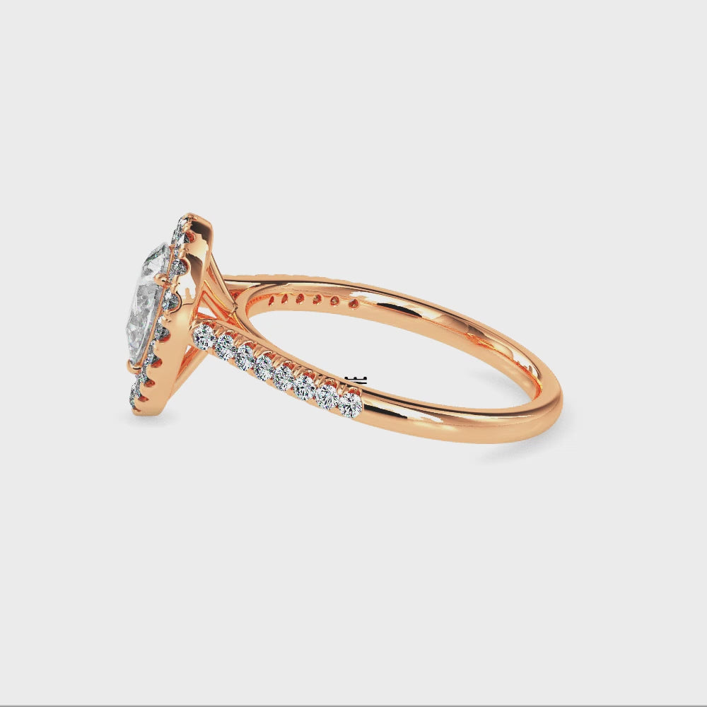 70-Pointer Pear Cut Solitaire Halo Diamond Shank 18K Rose Gold Ring JL AU 19040R-B
