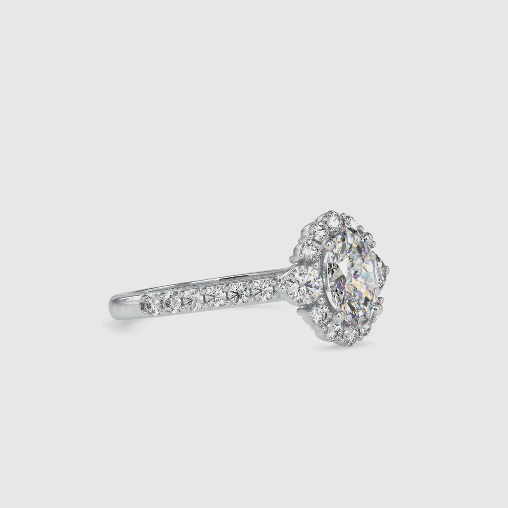 30-Pointer Oval Cut Solitaire Halo Diamond Accents Shank Ring JL PT 0059