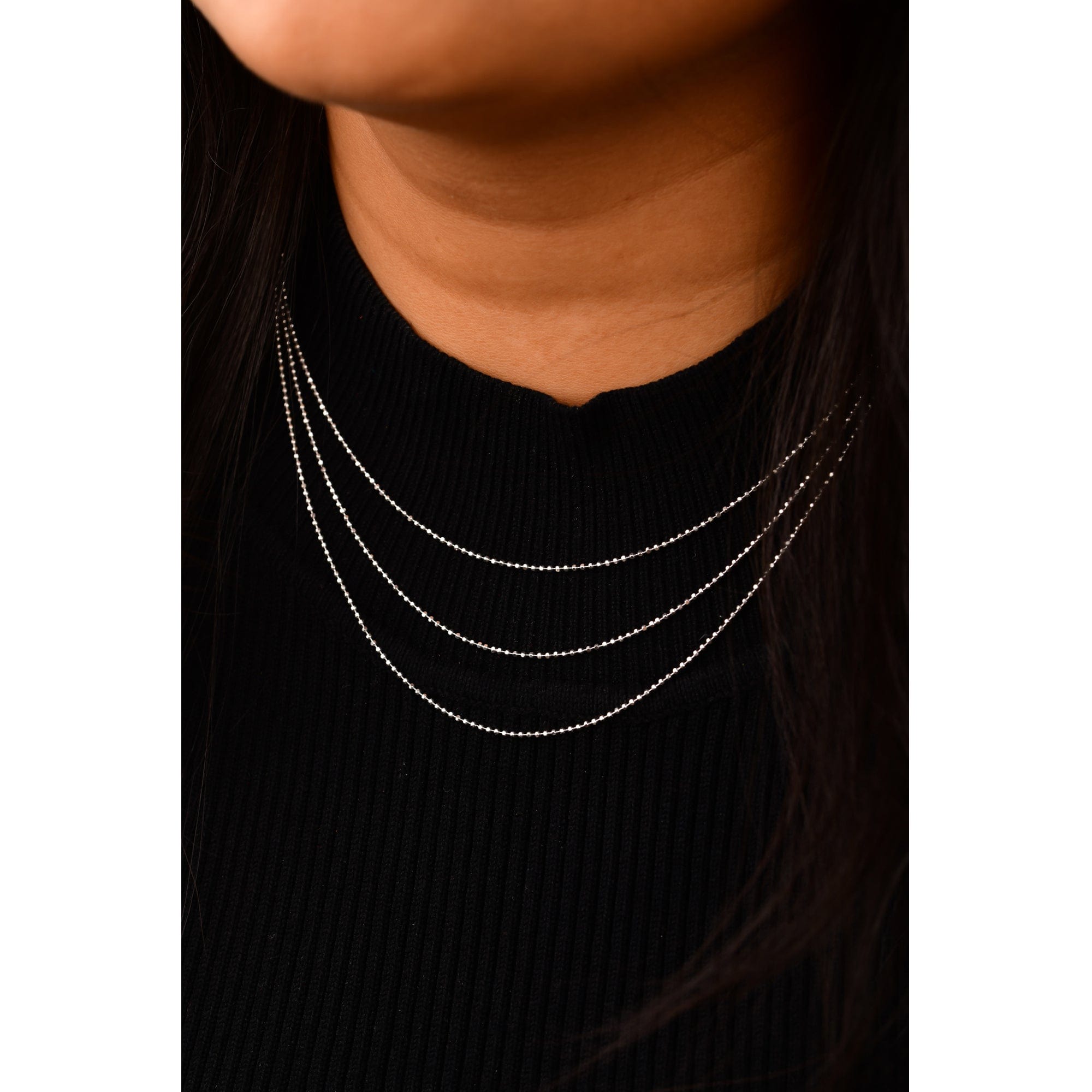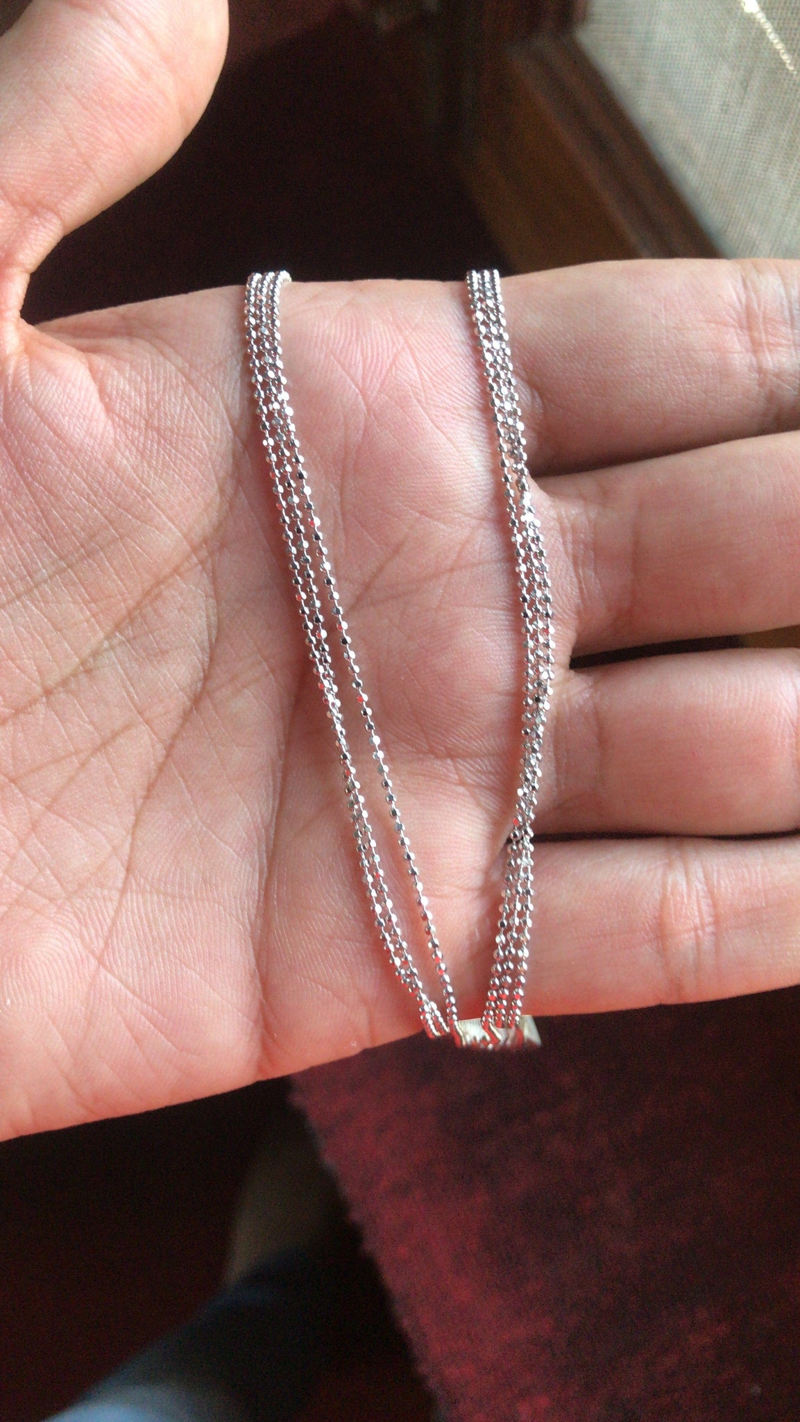 Designer platinum chain for Women with small platinum balls that shine like diamonds. The chain does not have actual diamonds set in it.