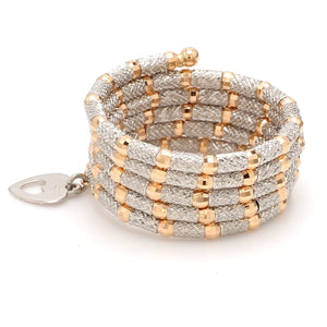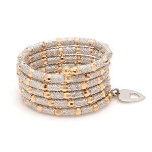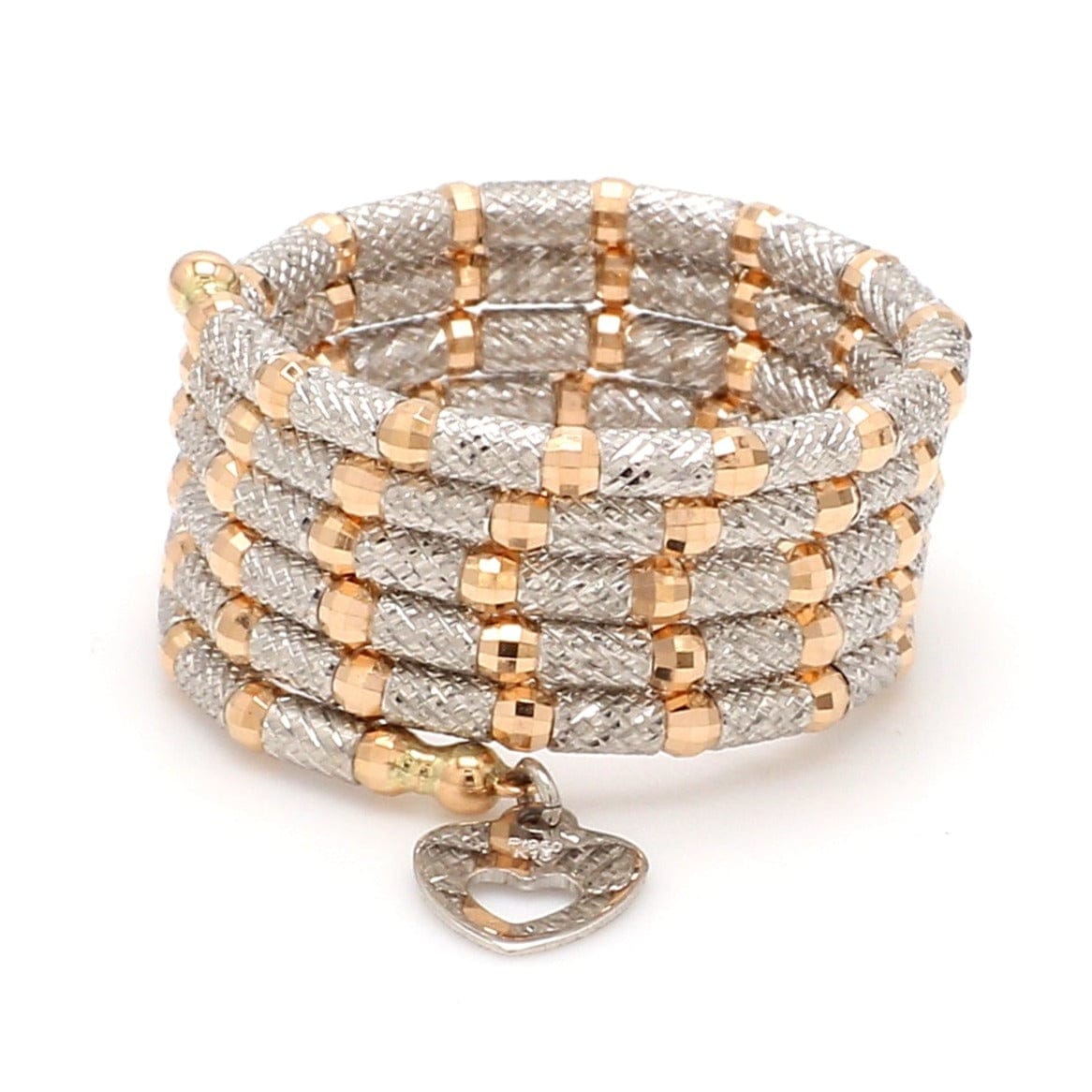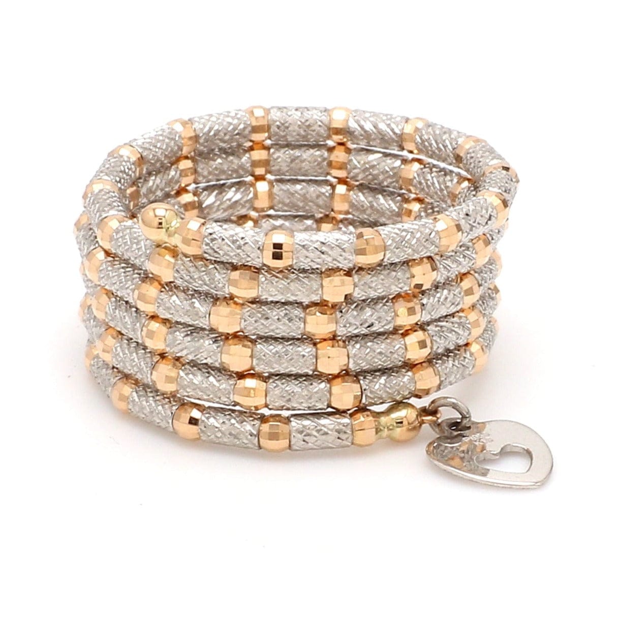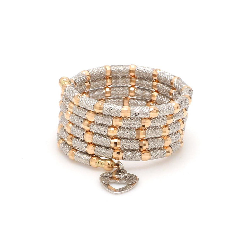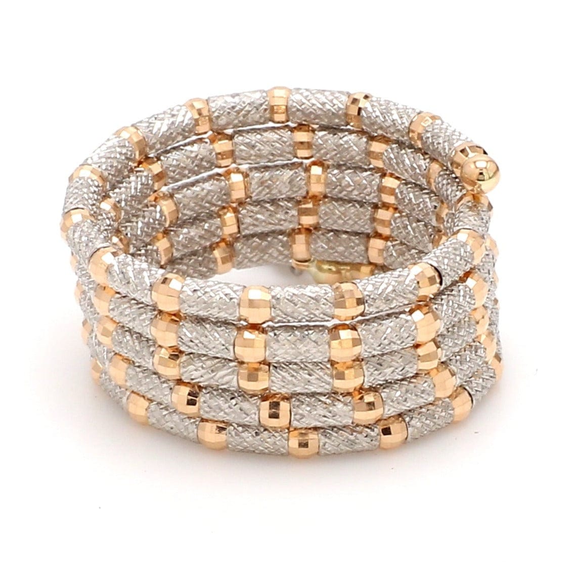 Unique elegant free-size ring crafted as 5-row of platinum & rose gold with a unique texture. The ring size is flexible.
