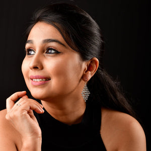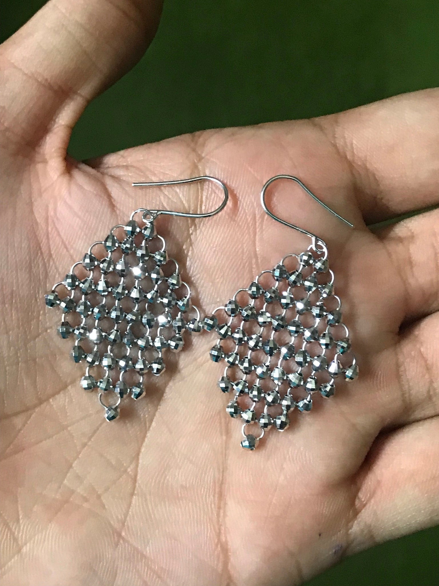 Designer platinum earrings with hanging balls of platinum that dazzle like diamonds. Ideal for girls & women who prefer light weight jewellery.