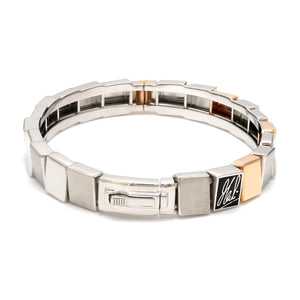 Platinum & Rose Gold Bracelet with Black Stone for Men JL PTB 1323