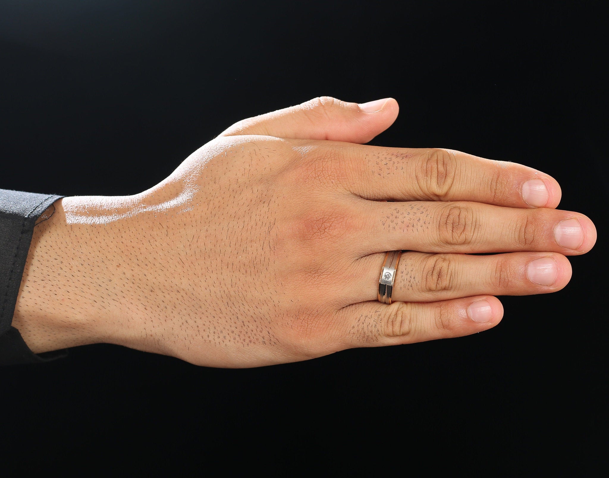 Ready to Ship - Ring Size 15, 21 - Platinum & Rose Gold Fusion Single Diamond Ring for Men JL PT 995