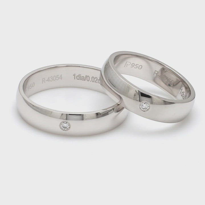 Jewelove™ Rings Ready to Ship - Ring Size 22, 6mm Single Diamond Platinum Love Bands JL PT 630