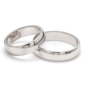 The ring is ready for shipping in ring size 22. Classic 6mm bands with 2 pointer diamonds for couples who believe in simplicity and class. The band is in complete hi-polish. It can be made in matte finish on order.