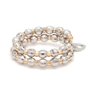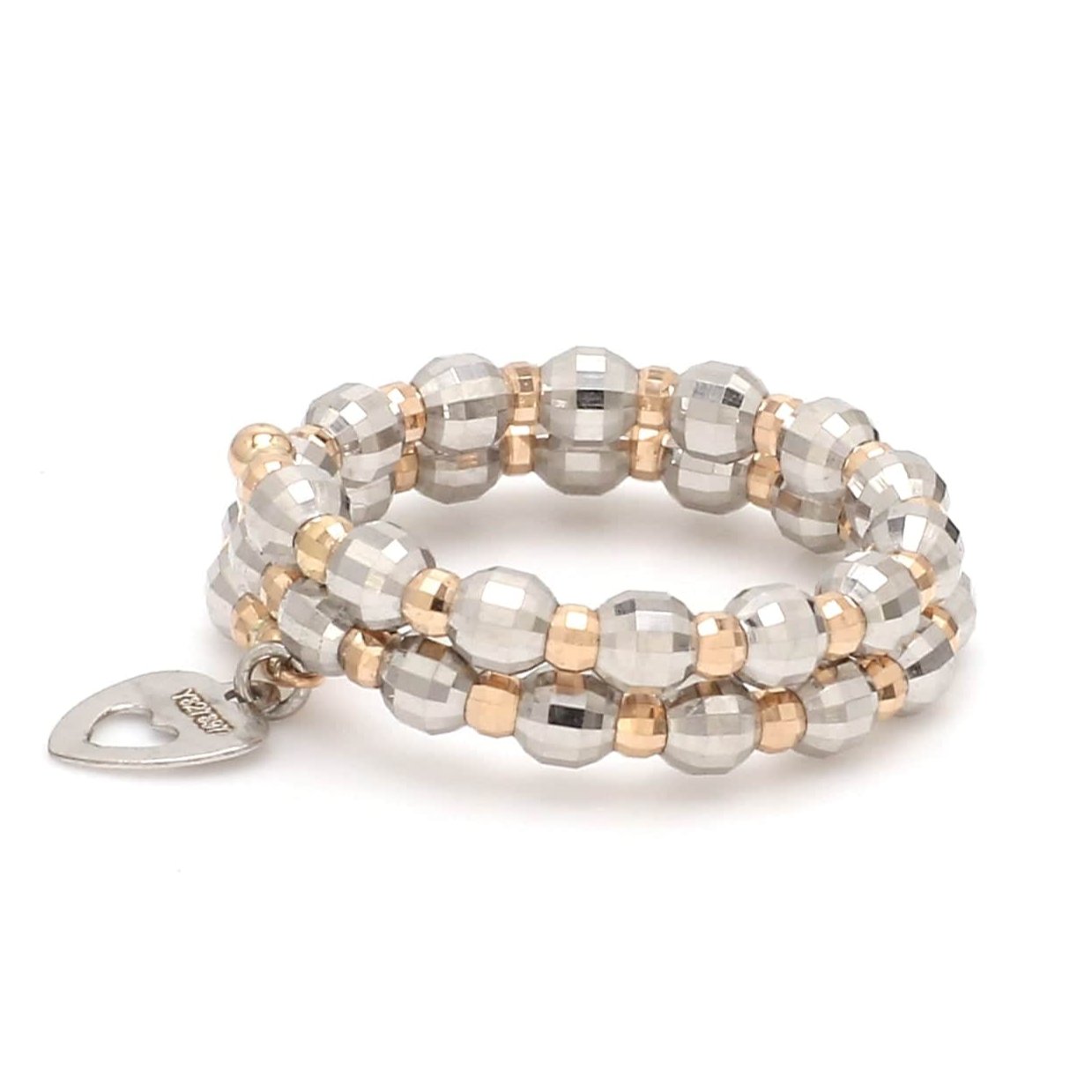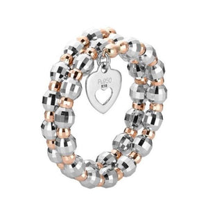 Japanese 2 Row Flexible Platinum Rose Gold Fusion Ring with Diamond Cutting JL PT 1021