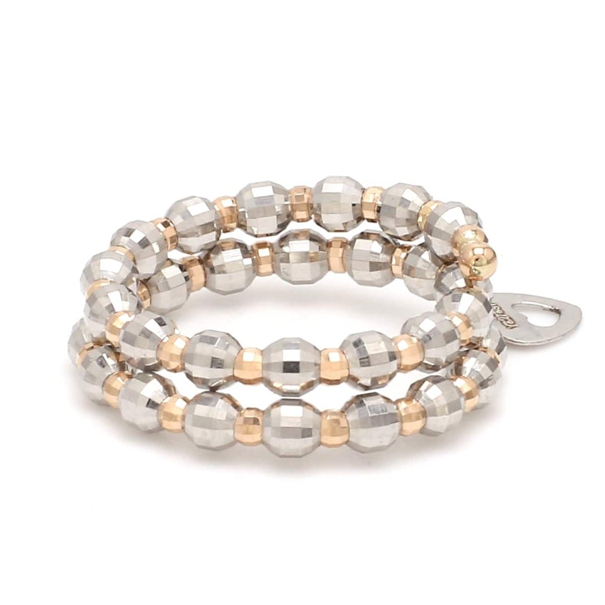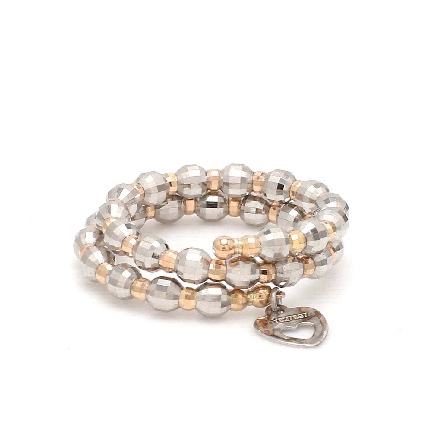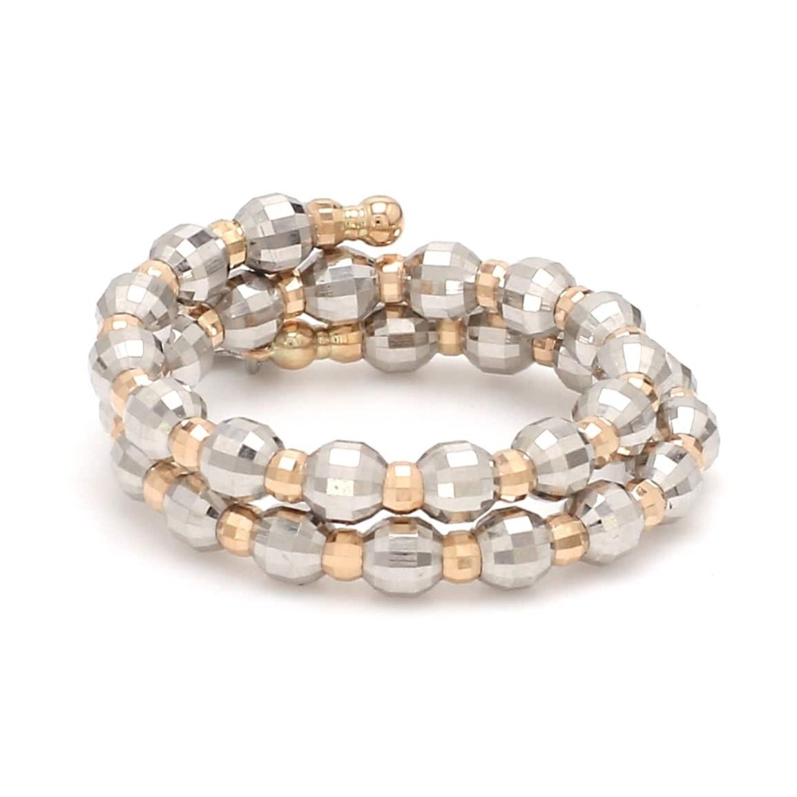 Platinum & 18K Rose Gold fusion ring made of diamond cut balls. The ring is crafted in such a way that the platinum balls sparkle like diamonds! Crafted in Platinum. Hallmarked for Pt 950. Certified by PGI. The ring has a flexible size.