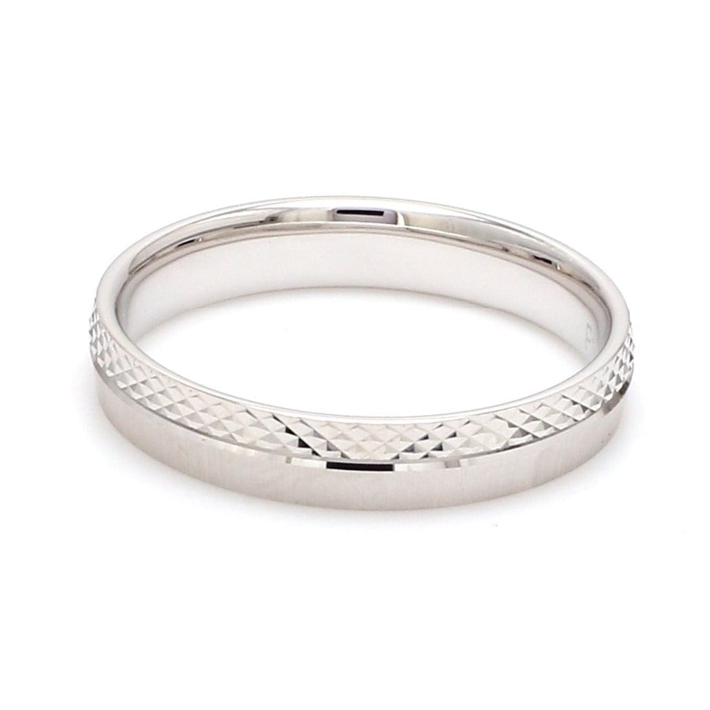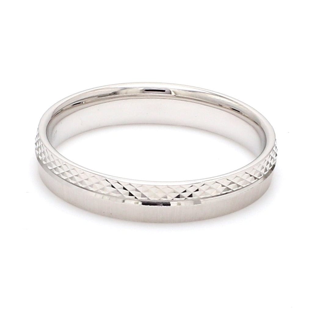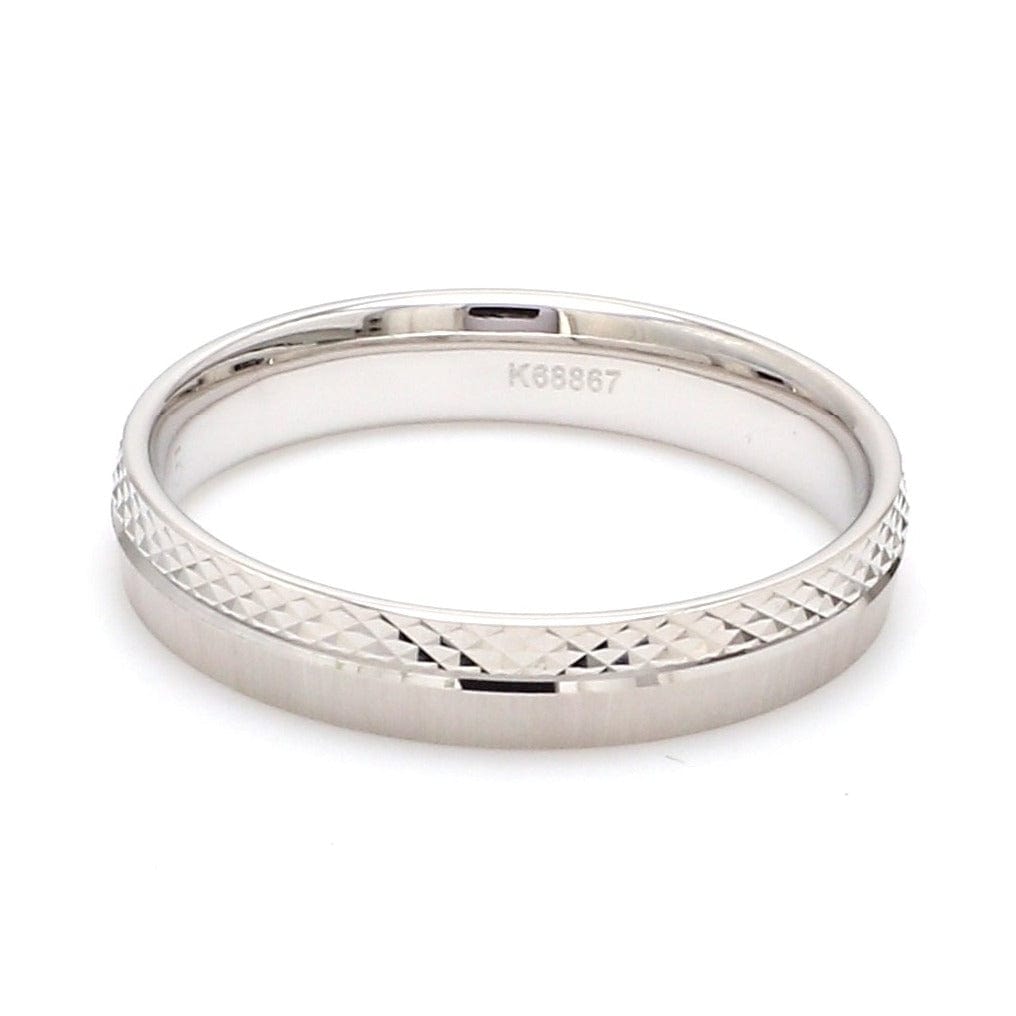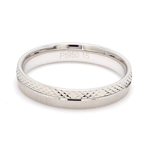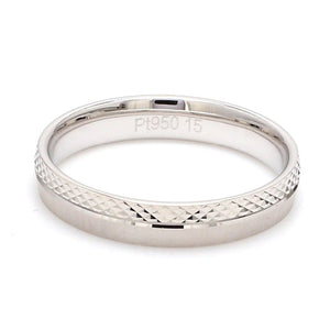 Designer platinum ring made in Japan. This ring has a unique rainbow finish on one half & a textured cut on the other half. Just like the two of you, uniquely complementing each other, being the better half for your beloved.